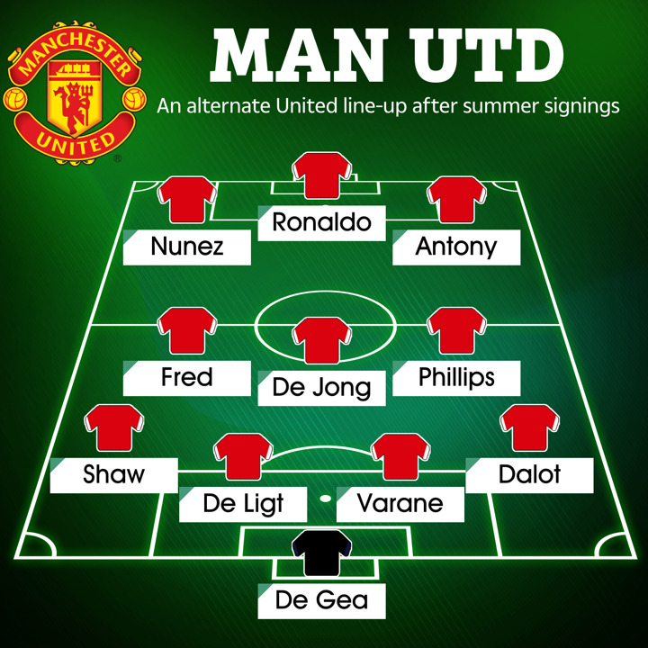 Confirmed:how man United will line up after Man Utd transfer overhaul with Nunez and De Jong joining Kante and Dybala next season ,as ten hag reveals new captain ,awaits appointment,as Ronaldo and other appear in reserve team .